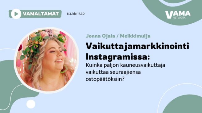 Vaikuttajamedian perustaja ja VAMA Networkin toinen omistaja Johanna Tolppola piti webinaarin aiheella tekoälyn hyödyntäminen sisällöntuotannossa!…